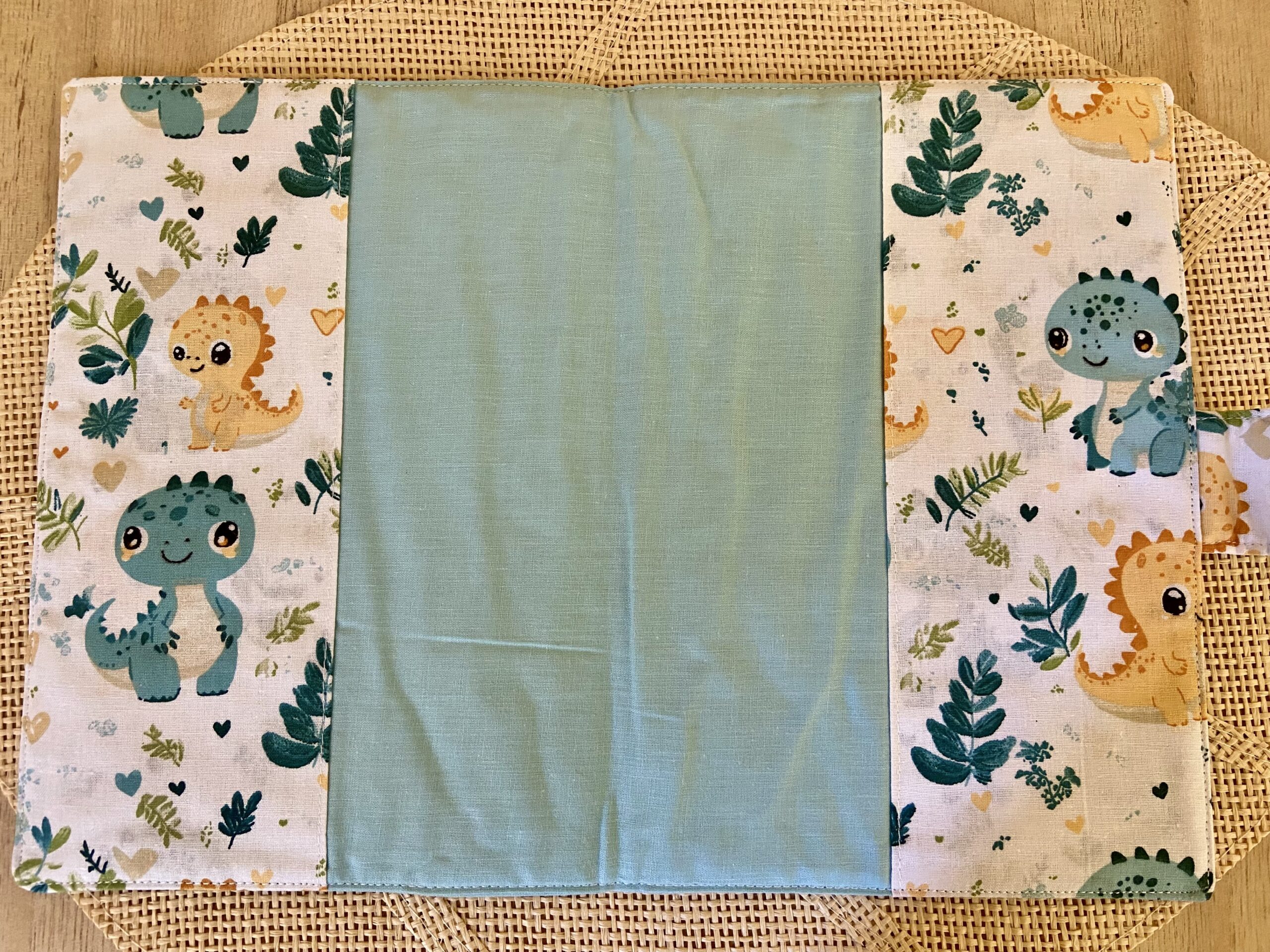 - Composition : tissu imprimé / tissu uni 100 % coton, molletonné, passepoil assorti